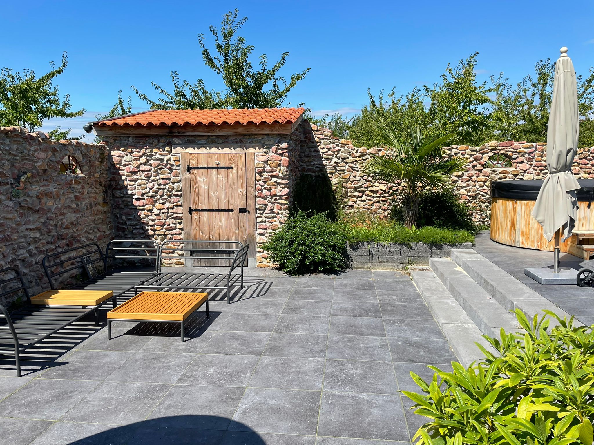 Naast het terras is ook een looppad aangelegd dat de verschillende delen van de tuin met elkaar verbindt. Door de juiste materialen en verhoudingen te kiezen, vormt het geheel één samenhangend ontwerp. De randen zijn netjes afgewerkt en waar nodig zijn opsluitbanden geplaatst om de bestrating op zijn plek te houden. Dit draagt bij aan de levensduur en het onderhoudsgemak van de tuin.