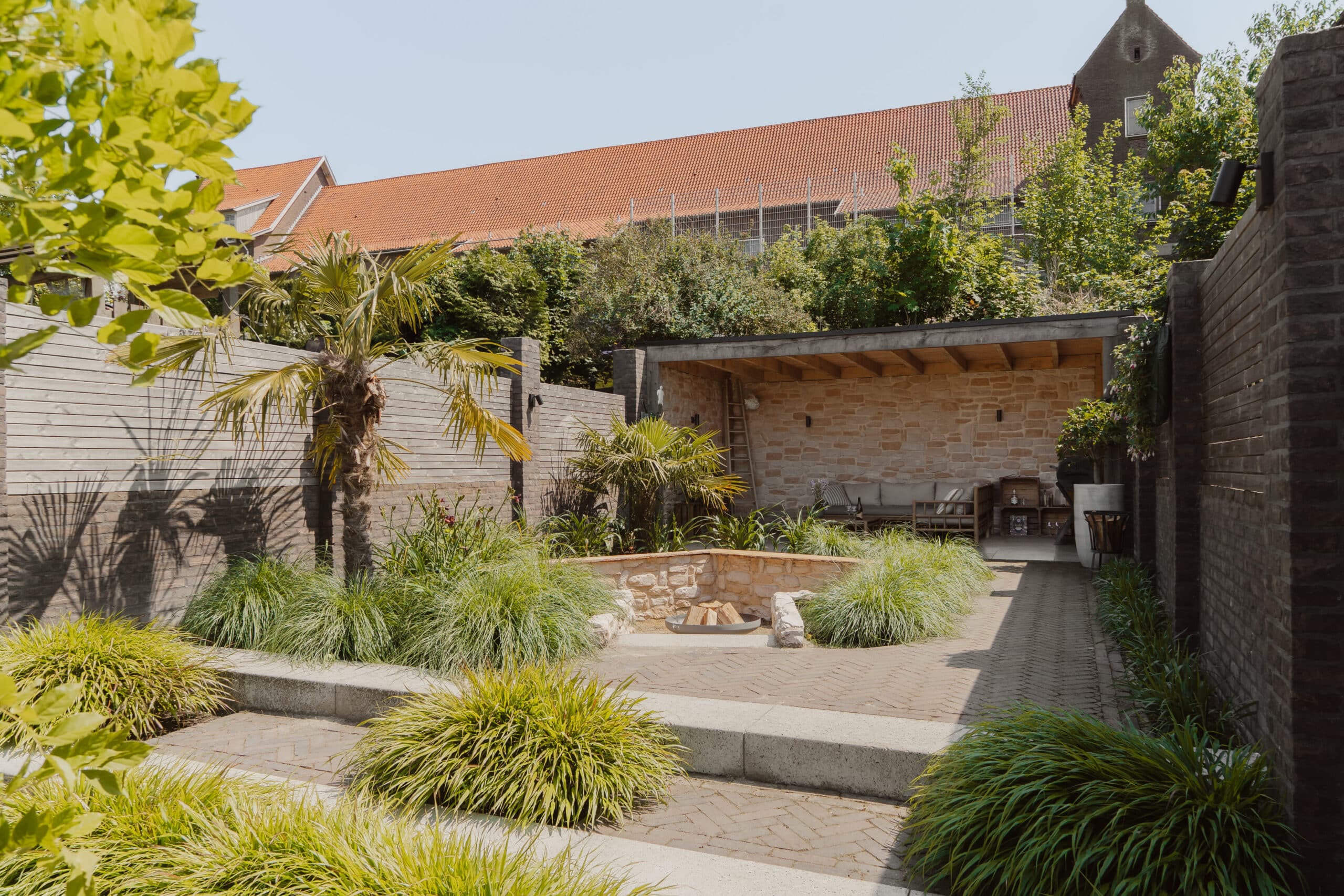 Naast het terras is ook een looppad aangelegd dat de verschillende delen van de tuin met elkaar verbindt. Door de juiste materialen en verhoudingen te kiezen, vormt het geheel één samenhangend ontwerp. De randen zijn netjes afgewerkt en waar nodig zijn opsluitbanden geplaatst om de bestrating op zijn plek te houden. Dit draagt bij aan de levensduur en het onderhoudsgemak van de tuin.